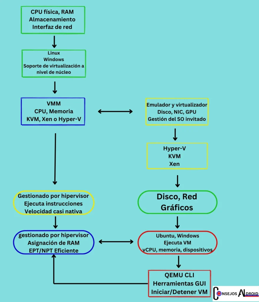 - Hipervisores: Herramientas como HAXM de Intel o KVM de Linux aceleran las cosas con la virtualización asistida por hardware. Esto hace que el emulador funcione más rápido al adaptar la arquitectura de tu ordenador a la de Android.